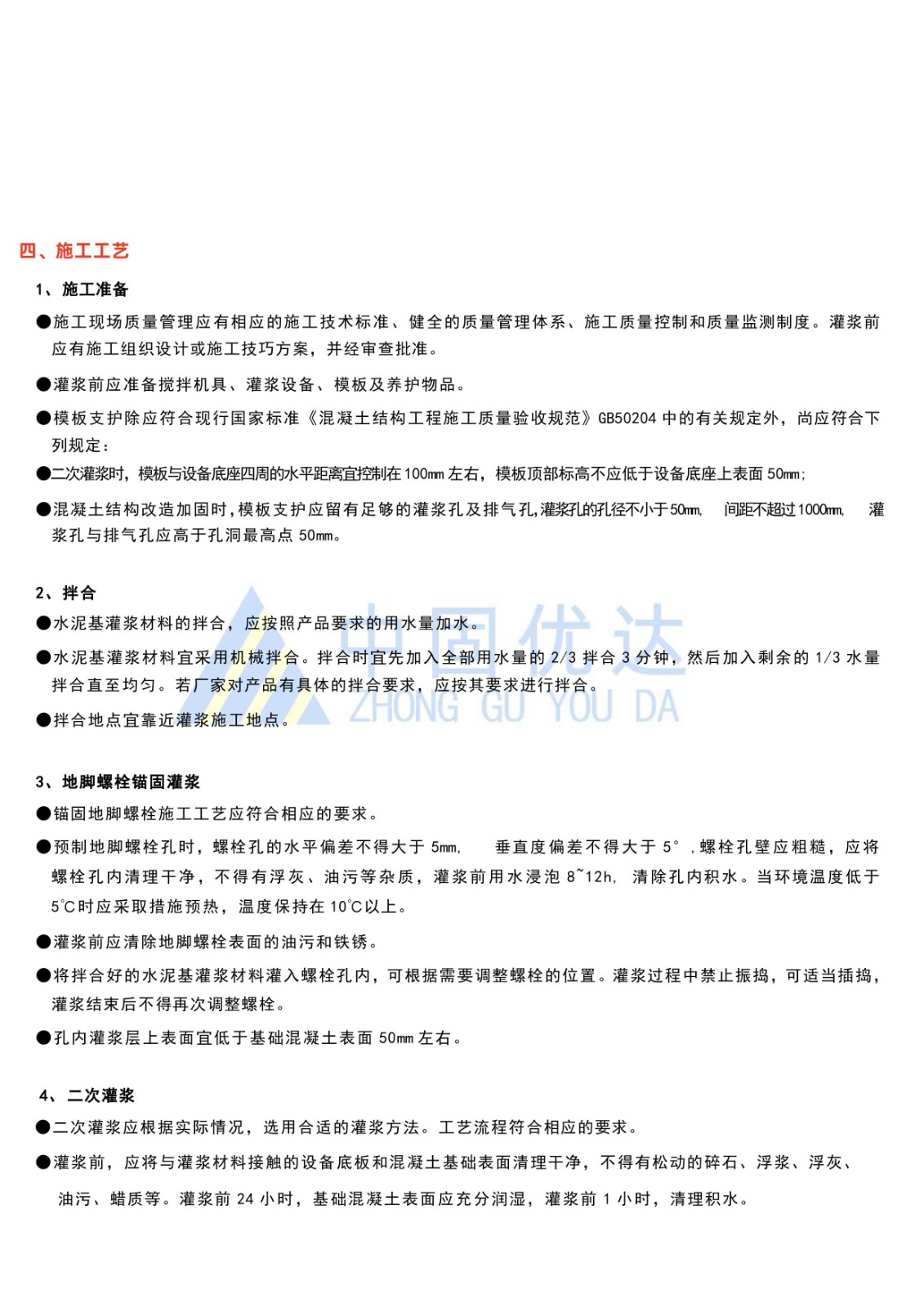 2、灌漿料成分規(guī)格不同,水料要嚴格按著使用說明配比;