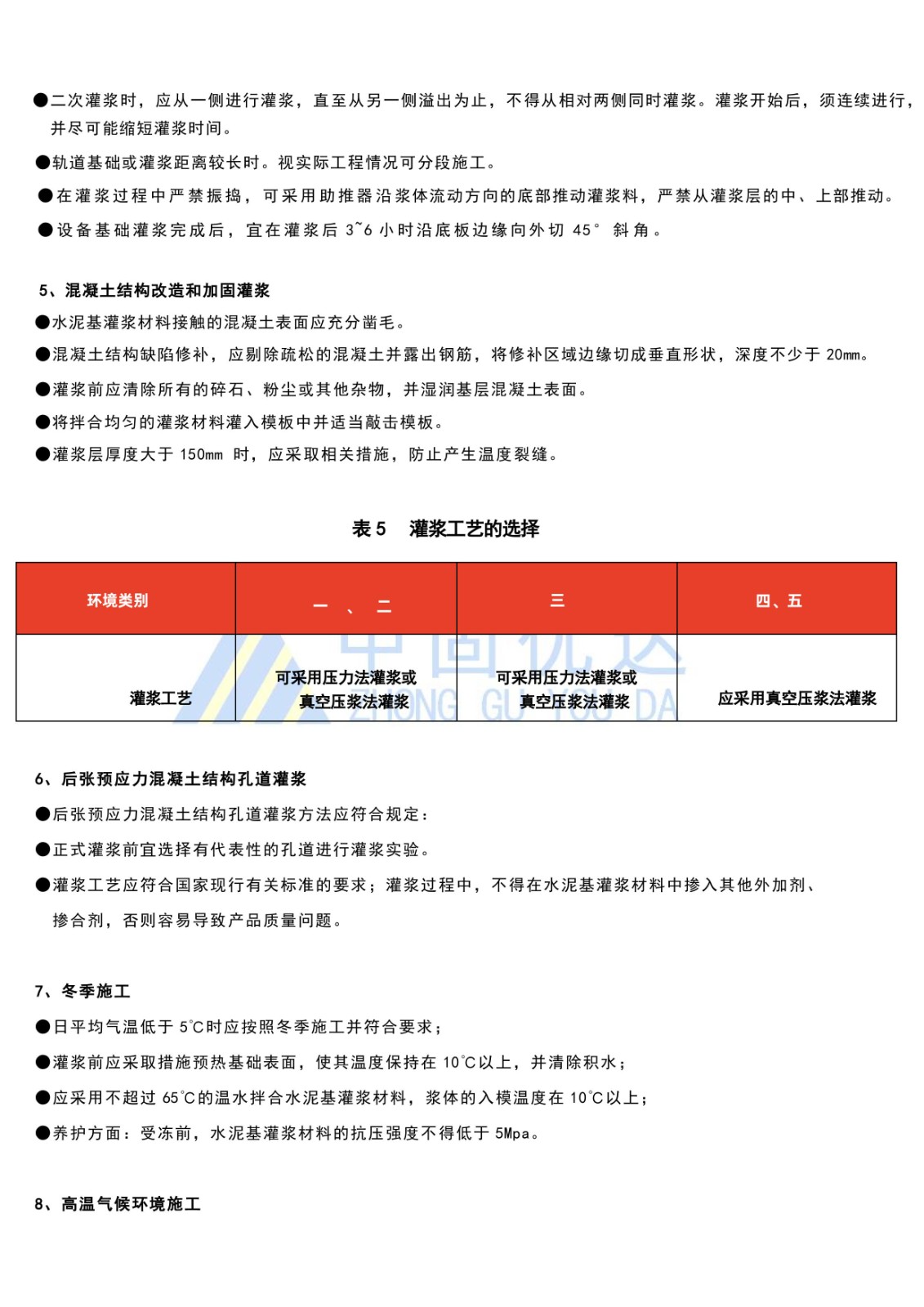 5、灌漿后至脫模前,應避免碰撞到灌漿部位和設施,以免損壞未結硬的灌漿層;