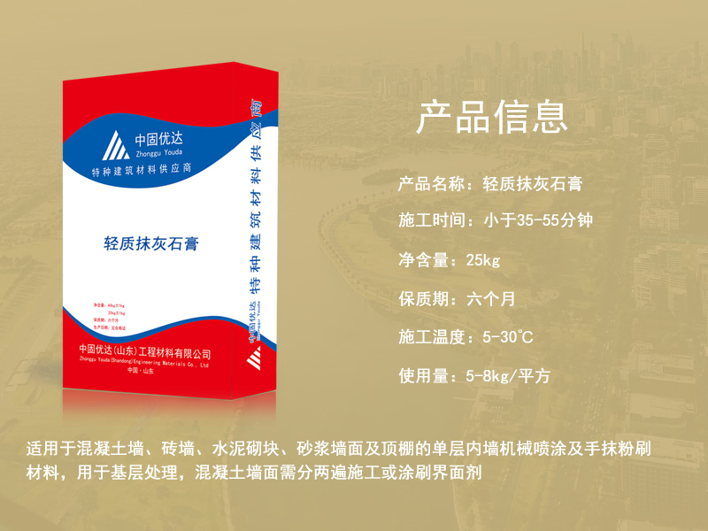 輕質石膏抹灰砂漿也叫做輕質抹灰石膏、輕質粉刷石膏,是以高純度的半水脫硫石膏為主要膠凝材料,加入無機輕集料和適量的保水劑、緩凝劑等外加劑,經工廠預混制成的成品抹灰石膏。可廣泛取代傳統的水泥砂漿找平,用于室內建筑內墻和樓板的抹灰找平是建筑內墻以及頂板常用的一種抹灰材料,可以代替水泥以及石灰砂等,在適用性非常廣泛,適用于任何墻體,克服傳統抹灰的缺點,而且這種抹灰粘接力非常的強,能夠與任何基材進行粘接,不會受到厚度的限制。在流動性以及飽水性上也是非常的,可以在0度進行施工,這種石灰膏環保無味、抗裂性效果好,具有保溫隔熱的效果,能夠調節室內的濕度、干度方便施工,節省工期和界面處理的工序以及材料使用,輕質抹灰石膏砂漿。